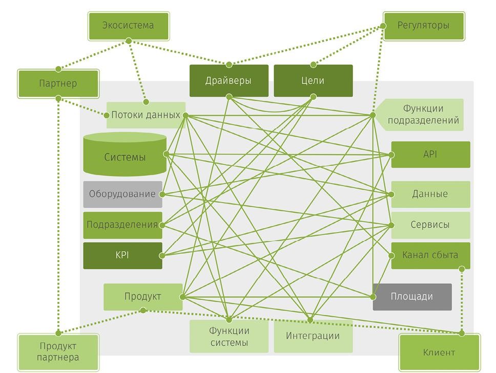 Архитектура предприятия (Enterprise Architecture) – это область знаний об организованности (составе, связях и отношениях) отдельных частей предприятия, причем самых разных и абсолютно всех: систем, процессов, людей, инфраструктуры, данных, целей, задач, требований и т.д. Последние 10 лет мы воспринимали организованность только через призму бизнес-процессов или внедрения очередной комплексной системы (CRM, BPMS, ERP). Архитектура смотрит на это шире: цели должны совпадать с ресурсами компании по производству продуктов/услуг, продукты должны адресовать ценности клиента, клиенты взаимодействуют с компанией через предпочтительные для них каналы, каналы поддерживаются процессами, процессы обеспечиваются ИТ-системами, системам нужна инфраструктура, системы сращиваются с АСУ ТП, АСУ ТП изменяет свою природу: монолит разделяется на сеть взаимодействующих IoT-устройств. Всё пронизано целесообразностью и рациональностью, всё пронизано сотнями решений и корректирующих уточнений.