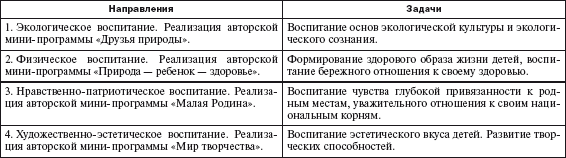 Система нацелена на совершенствование воспитательной работы и включает ряд авторских мини-программ по основным приоритетным направлениям развития в ДОУ (см. таблицу).