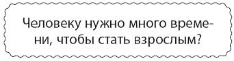 – Теперь у меня другой вопрос. Зачем нам нужно столько времени на взросление? Какие идеи на этот счёт?