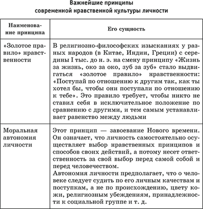 Таким образом, нравственная культура личности – это знание общих моральных принципов, способность «переплавить» их в глубокие прочувственные убеждения, умение применять нормы поведения, находить адекватную им форму поступка.