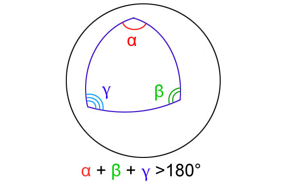 Обычная геометрия, которую изучают в школе, является евклидовой. В ее основе плоское пространство, когда каждый треугольник имеет сумму углов, в точности равную 180 градусов. Но