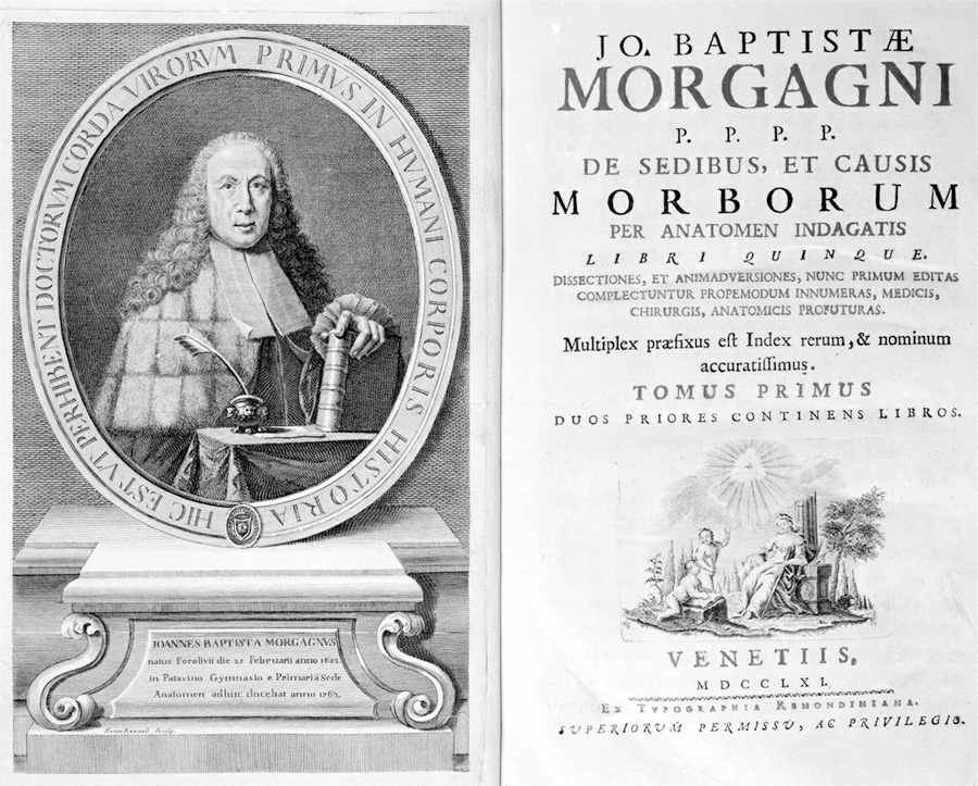 1.2. Джованни Баттиста Морганьи. Титульный лист и фронтиспис трактата Морганьи «О положениях и причинах болезней»
