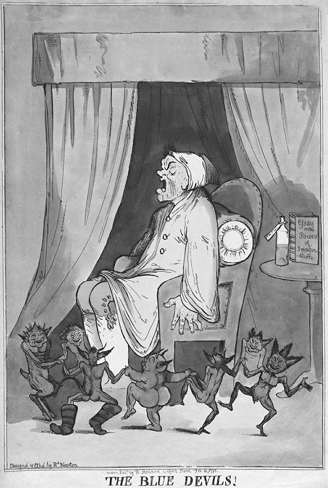 2.3. Мужчина, страдающий подагрой (изображенной в виде пляшущих синих дьяволят). Ричард Ньютон. Лондон: У. Холланд, 1795