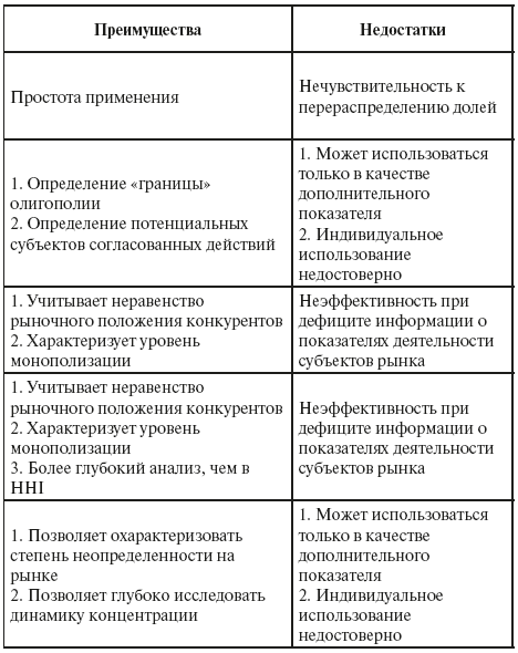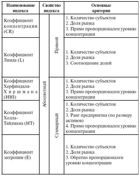 Комплексный анализ всей совокупности использующихся экономических коэффициентов рыночной концентрации (табл. 1) позволяет сделать следующие выводы.