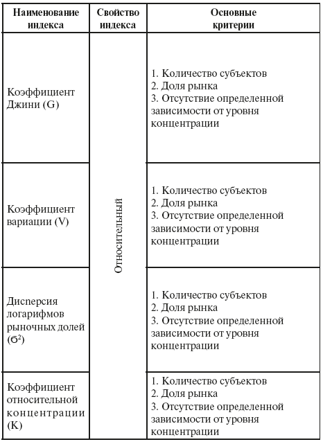 Во-вторых, дополнительным критерием, позволяющим дать более глубокую оценку степени концентрации рынка, является признак неравномерности распределения долей рынка между конкурентами. Это становится особенно актуально на олигополистических рынках, где условия обращения товара определяются несколькими крупными конкурентами. В этих случаях преимущество имеют относительные индексы концентрации.