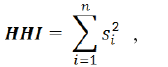 1) коэффициент Херфиндаля-Хиршмана, выражается через следующую формулу: