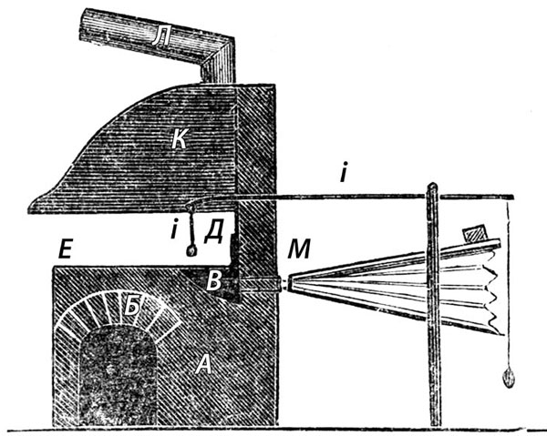 Наши обыкновенные печи, даже при самом усиленном накаливании их, для этой цели не годятся, ибо не в состоянии развить требуемую высокую температуру, а потому употребляется специальная печь – кузнечный горн, в котором энергия горения поддерживается искусственно, посредством особых воздуходувных приборов – мехов и вентиляторов.
