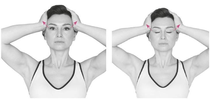 Для контроля подвижности лба попробуй такую постановку рук, чтобы пальцами удерживать лоб