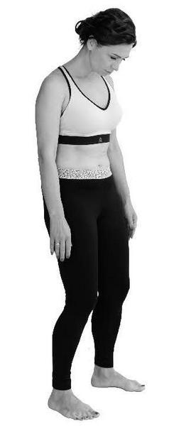 Расслабься, медленно округли спину, наклони голову вниз, колени мягкие, полусогнутые; почувствуй, как приятно расслабляются задняя поверхность шеи, трапециевидные мышцы.