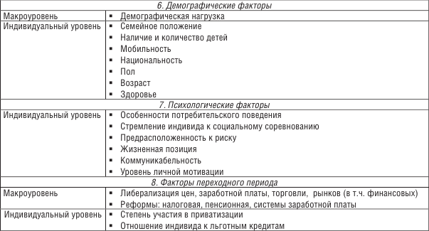 Таблица 1.1. Классификация факторов дифференциации доходов населения