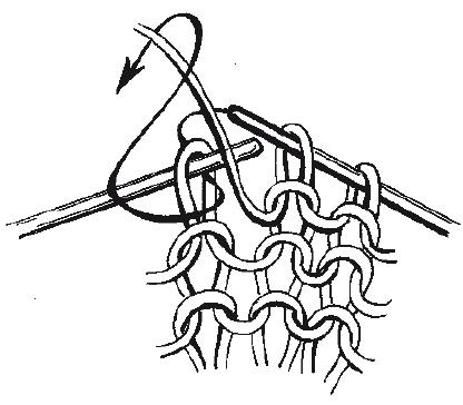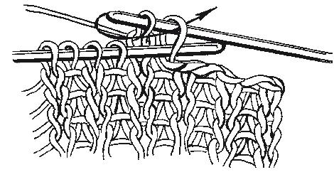 Для того, чтобы прибавленные петли не оставляли отверстий в следующем ряду, этот накид следует провязывать лицевой скрещенной или изнаночной скрещенной петлей (рис. 6).