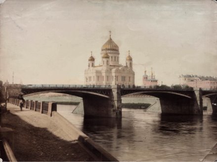 Вид на Большой Каменный мост и храм Христа Спасителя. B. Avanzo. Specialite de photographies. 1890-е гг.