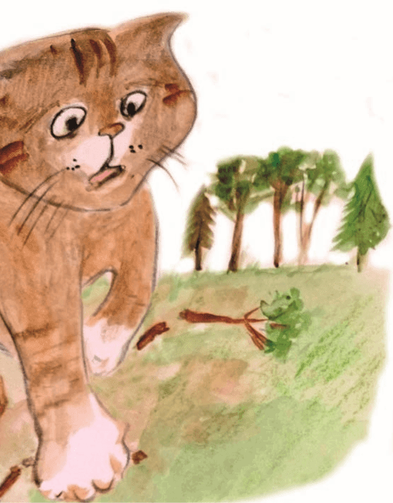 В этот момент со стороны болота донеслось: «Кис-кис-кис!» – это Ух-Брюх шёл навстречу Коту Лариону, чтобы задать ему корму. Котзилла услышала призыв, и вскоре содрогающаяся земля возвестила о приближении Кота Лариона в новом обличии!