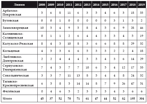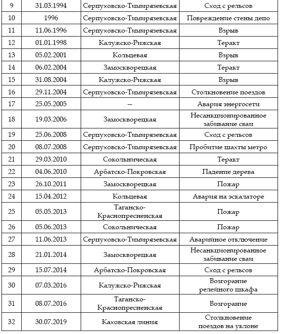 Данные взяты из открытых источников: https://twitter.com/metrooperativno?lang=ru, а также из электронного ресурса. Режим доступа: http://mosday.ru/news/tags.php?metro (дата обращения: 02.07.2019).
