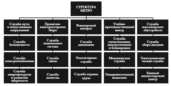 Структура метро представлена 19 структурными подразделениями (службами) отображена на рисунке 1.