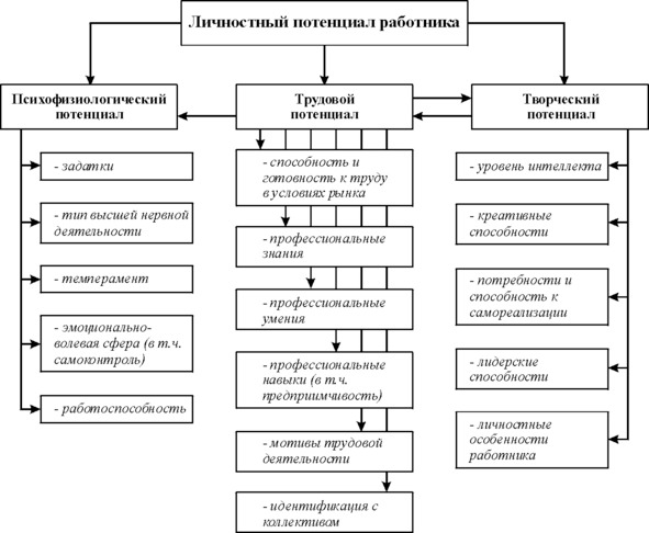 При этом личностный потенциал работника включает в себя психофизиологический, трудовой и творческий потенциалы. Рис.1.3.