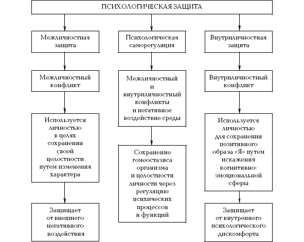 – это деятельность, предотвращающая нарушение внутренней устойчивости личности и социальной общности, нормального течения психологической жизни человека и его поведения под влиянием внешних воздействий. Психологическая защита
