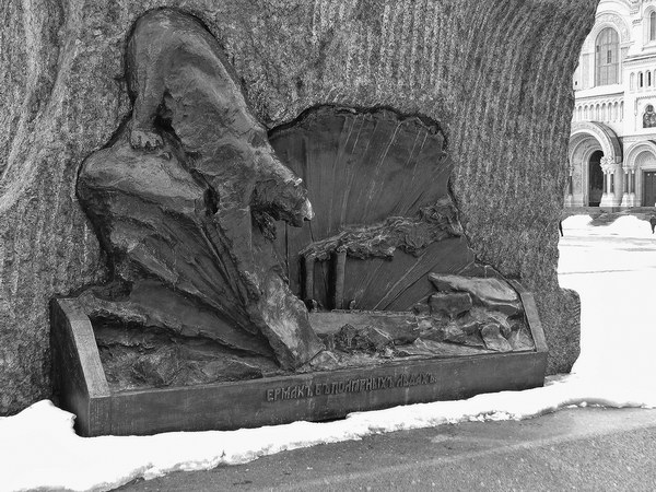 Фрагмент памятника С.О. Макарову в Кронштадте, изображающий ледокол «Ермак». Фото А. Булатникова
