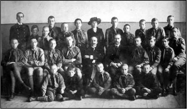 Каким образом обстояли дела у нас в России? Основатель скаутского движения Баден-Пауэлл (по непроверенным данным) побывал в России дважды. Первый раз как шпион, когда он вместе с братом, тоже разведчиком, пытался проникнуть на территорию воинской части в Царском Селе, чтобы разведать устройство русских военных аэростатов. Братья были задержаны, но им удалось бежать и достичь английского торгового судна, ожидавшего их в гавани Санкт-Петербурга. Второй раз он появился в России вместе со своей новой воспитательной системой.
