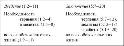 Тема попечительства и заботы (5:19,20) вытекает из того главного, что изложено в главе 2. Точно так же постановка ударения на том, как опасно злоупотреблять языком, повторяет в части заключения (5:9,12) тему из главы 3:1—12. Совпадение и повторение тем во введении и в заключении попросту поражает: важные истины – терпение и молитва – появляются в начале Послания, а затем еще раз повторяются в заключительной части.