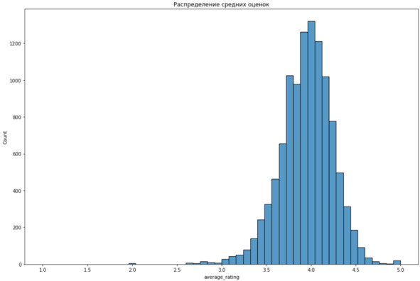 Гистограмма показывает, что средние оценки распределены практически нормально. Интересно, что в интервалах 2.5—3.0 и 4.8—5.0 видны небольшие подъемы линии. При нормальном распределении этого быть не должно. Это означает, что оценки в указанных интервалах имеют вероятность большую, чем это предсказывает нормальное распределение. Дополнительная проверка на нормальность распределения с помощью статистических методов будет показана ниже.