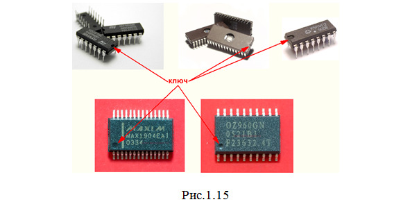 Нумерация этих выводов производится от «ключа» (рис.1.15 и 1.16) против часовой стрелки (рис.1.17а).