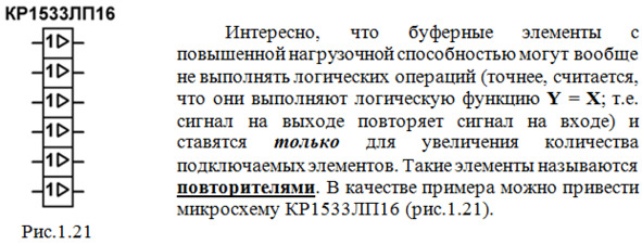 Некоторые элементы кроме логических операций выполняют еще и другие функции. Такие элементы обычно называют буферными. Применяются они в основном для двух целей: