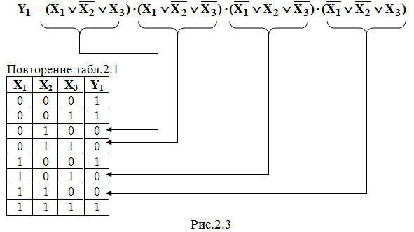Запишем СКНФ для заданной в табл.2.1 логической функции Y1 (на рис.2.3).