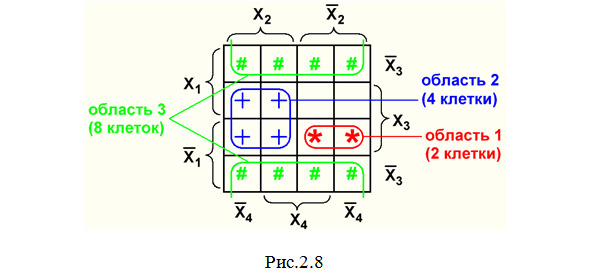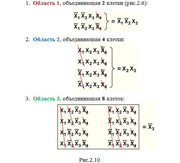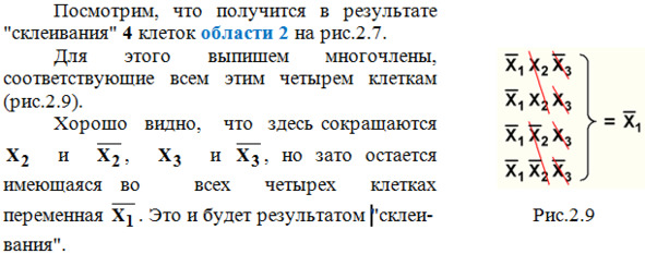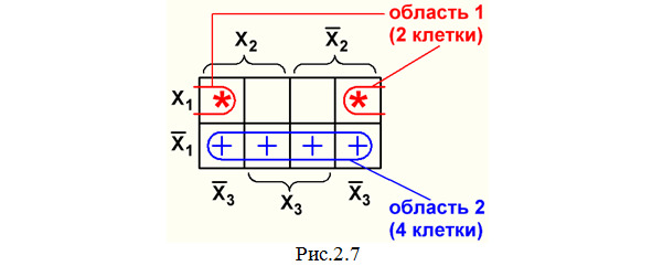Итак, в результате «склеивания» двух клеток области 1 рис.2.7 получается: X1·X3.