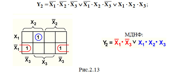 Пример 2. Минимизация СДНФ функции Y2 из темы 2.1 (рис.2.13):