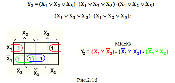 Пример 5. Минимизация СКНФ функции Y2 из темы 2.1 (рис.2.16).