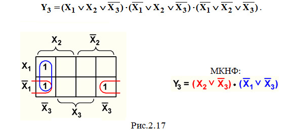 Пример 6. Минимизация СКНФ функции Y3 из темы 2.1 (рис.2.17).