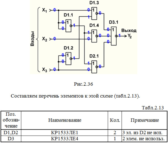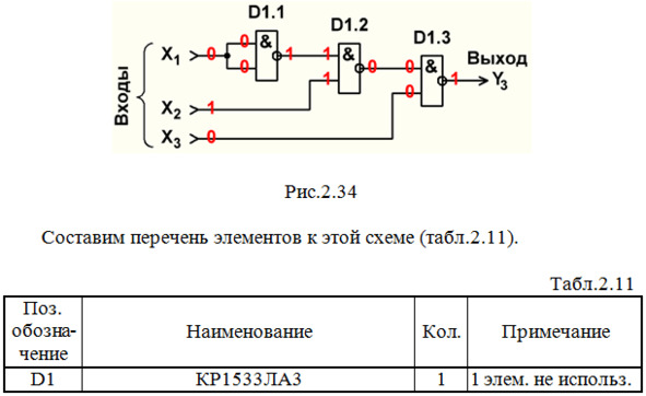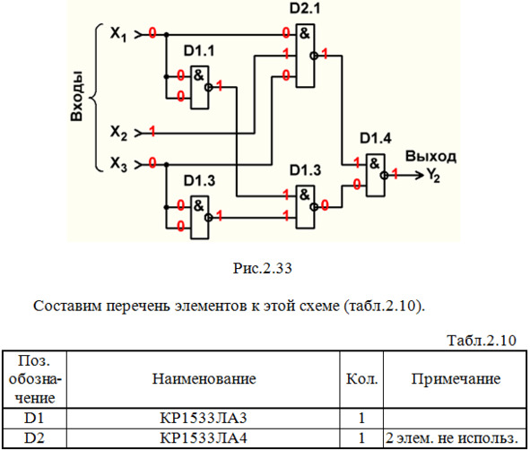 Подсчитываем требуемое количество элементов: 3 элемента 2И-НЕ (из них – 1 элемент для логического отрицания).