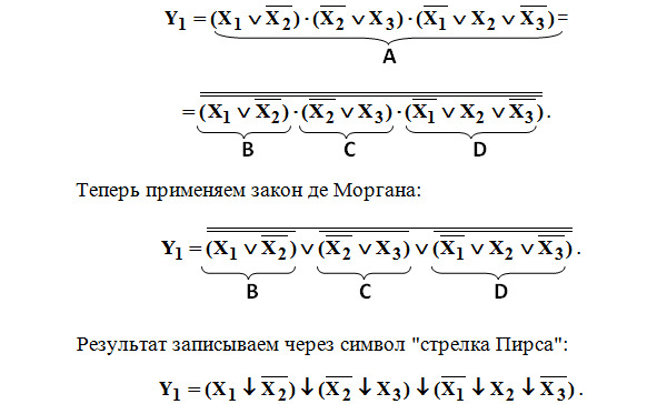 3. Полученное логическое выражение рекомендуется записать с использованием символа «стрелка Пирса» (смотрите табл.1.1), например: