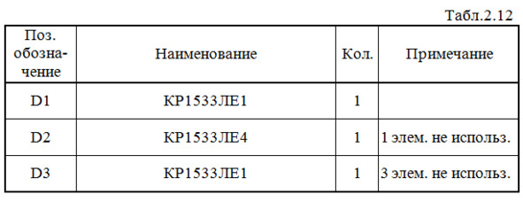 Составляем перечень элементов к этой схеме (табл.2.12).