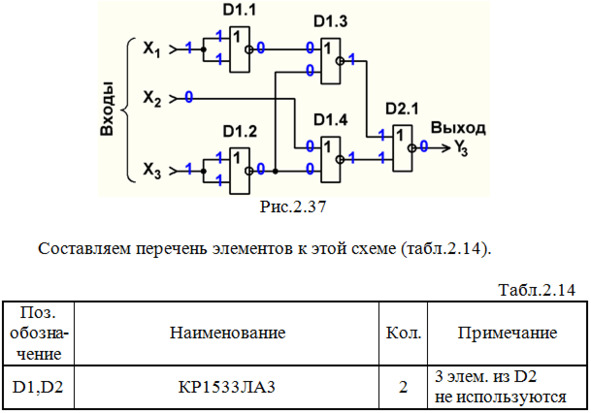 Выполним анализ работы ЦУ в статическом режиме для одной комбинации входных сигналов (см. рис.2.36 и синюю строку в табл.2.2).
