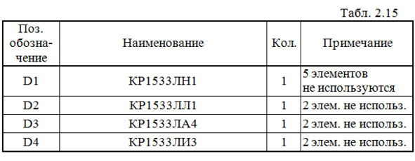 Составим перечень элементов к этой схеме (табл. 2.15).