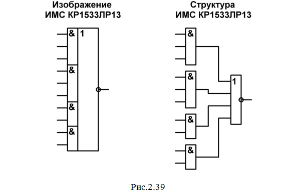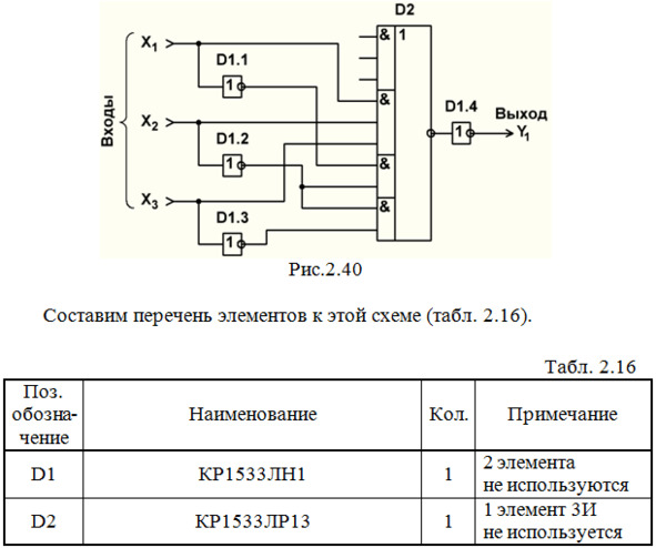 П р и м е ч а н и е: один элемент 3И из микросхемы КР1533ЛР13 получается лишним. В схеме рис. 2.40 его входы оставлены свободными, но этого делать нельзя! В микросхемах ТТЛ и ТТЛШ-структур входы лишних элементов обязательно следует куда-либо подключить, иначе данная ИМС работать не будет (смотрите тему 2.9).