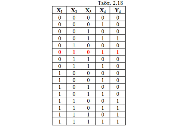 Задана таблица истинности ЦУ, имеющего 4 входа (табл. 2.18).