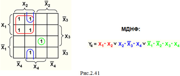 2. Минимизируем СДНФ методом Вейча (рис. 2.41):