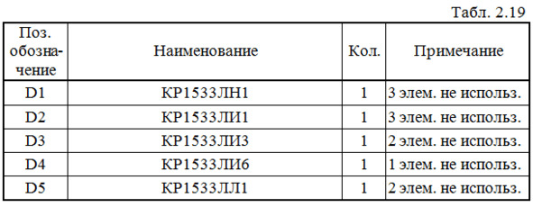 6. Составляем перечень элементов к этой схеме (табл. 2.19).