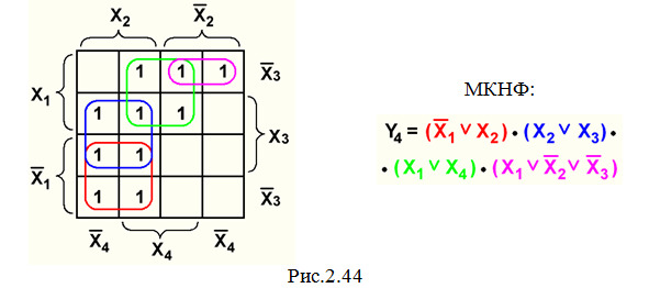 15. Минимизируем СКНФ методом Вейча (рис. 2.44).