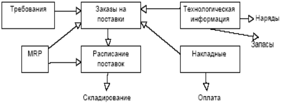 Сегодня модель MRP/ERP включает в себя следующие подсистемы, которые часто называют также блоками или сериями: