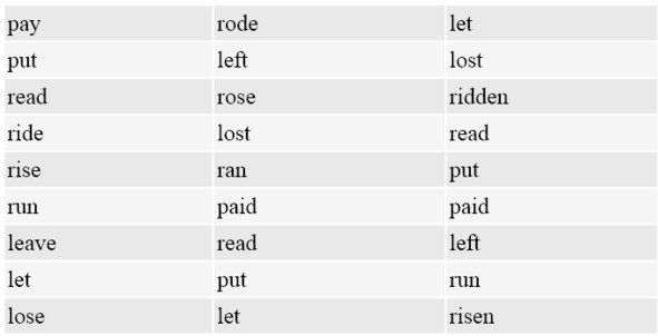 40. Matching ExerciseMatch the forms of the following verbs