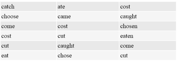 Make phrases with the second (Past Simple) form of the following verbs