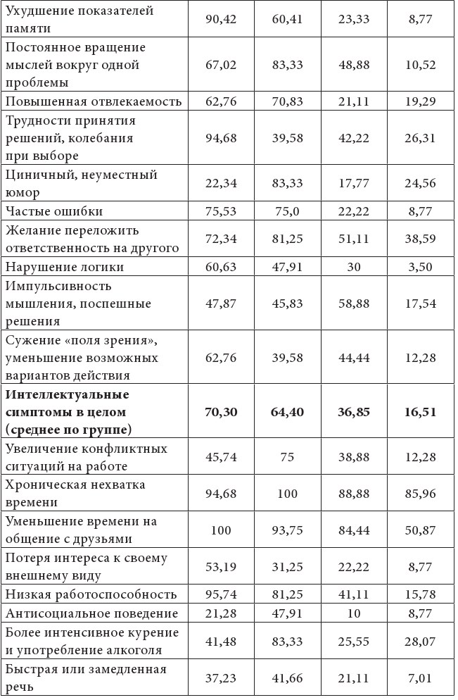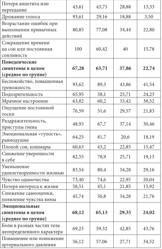 Для того чтобы получить наиболее полную картину изменений, которые произошли в эмоциональной, поведенческой, интеллектуальной сферах родителей после переживания травматического события, мы провели исследование с использованием методики комплексной оценки проявлений стресса (Ю.В.Щербатых). Результаты представлены в Таблице 2.3.