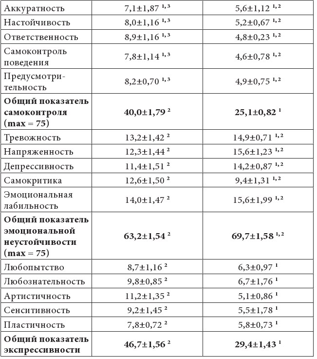 Примечание: 1, 2, 3 – статистически значимые различия (p < 0,05) по сравнению с группами с высоким, средним и низким уровнями СПА соответственно.