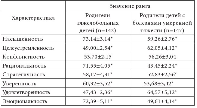 Таким образом, особенности эмоционального реагирования родителей на сообщение диагноза ребенка были связаны, как с тяжестью соматического состояния ребенка, так и с субъективными представлениями родителей о заболевании.