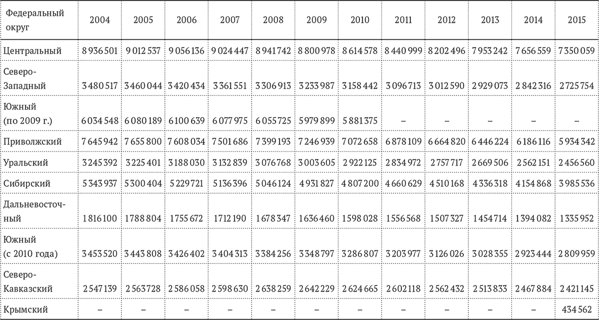 Примечание: данные за 2015 г. приведены с учетом Крымского федерального округа.
