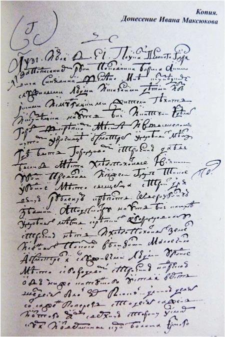 Такову указную память и по сей памяти служилых людей, знамена и пушки, ядра, порох, свинец, кремни дворянин Иван Максюков принял и по его прошению татарский голова Петр Максюков руку приложил».